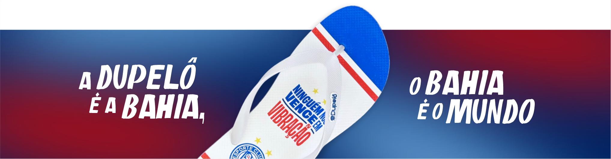 A coleção oficial Dupelô x Esporte Clube Bahia foi desenvolvida para unir a tecnologia de conforto da nossa terra com a grandeza global do Esquadrão. O Chinelo Masculino Dupelô E.C. Bahia Ninguém nos vence em vibração é uma edição especial e exclusiva do nosso site, criada para o torcedor que carrega o grito da arquibancada na alma e no pé. É a base ideal para quem tem orgulho de sua origem e sabe que a energia da torcida tricolor é única no mundo.